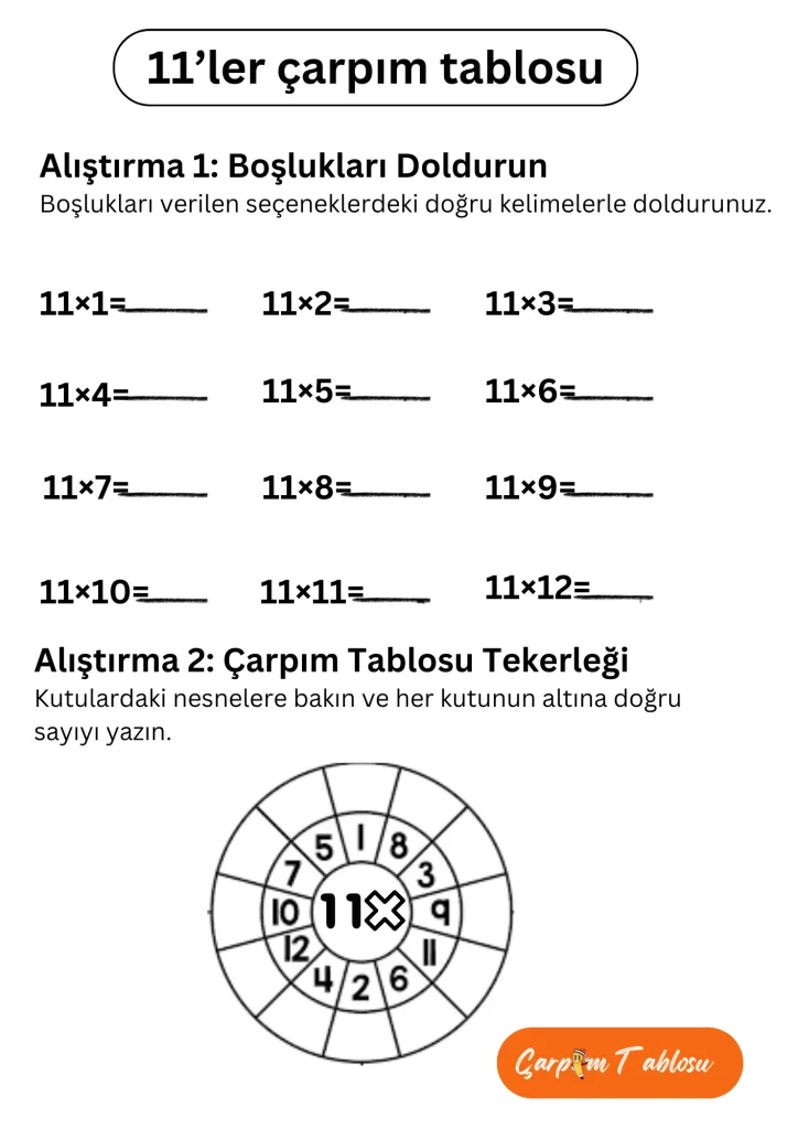11’ler çarpım tablosu çalışma sayfasına hoş geldiniz! Burada tabloları etkili bir şekilde öğrenmek için yapılandırılmış alıştırmalar keşfedeceksiniz.